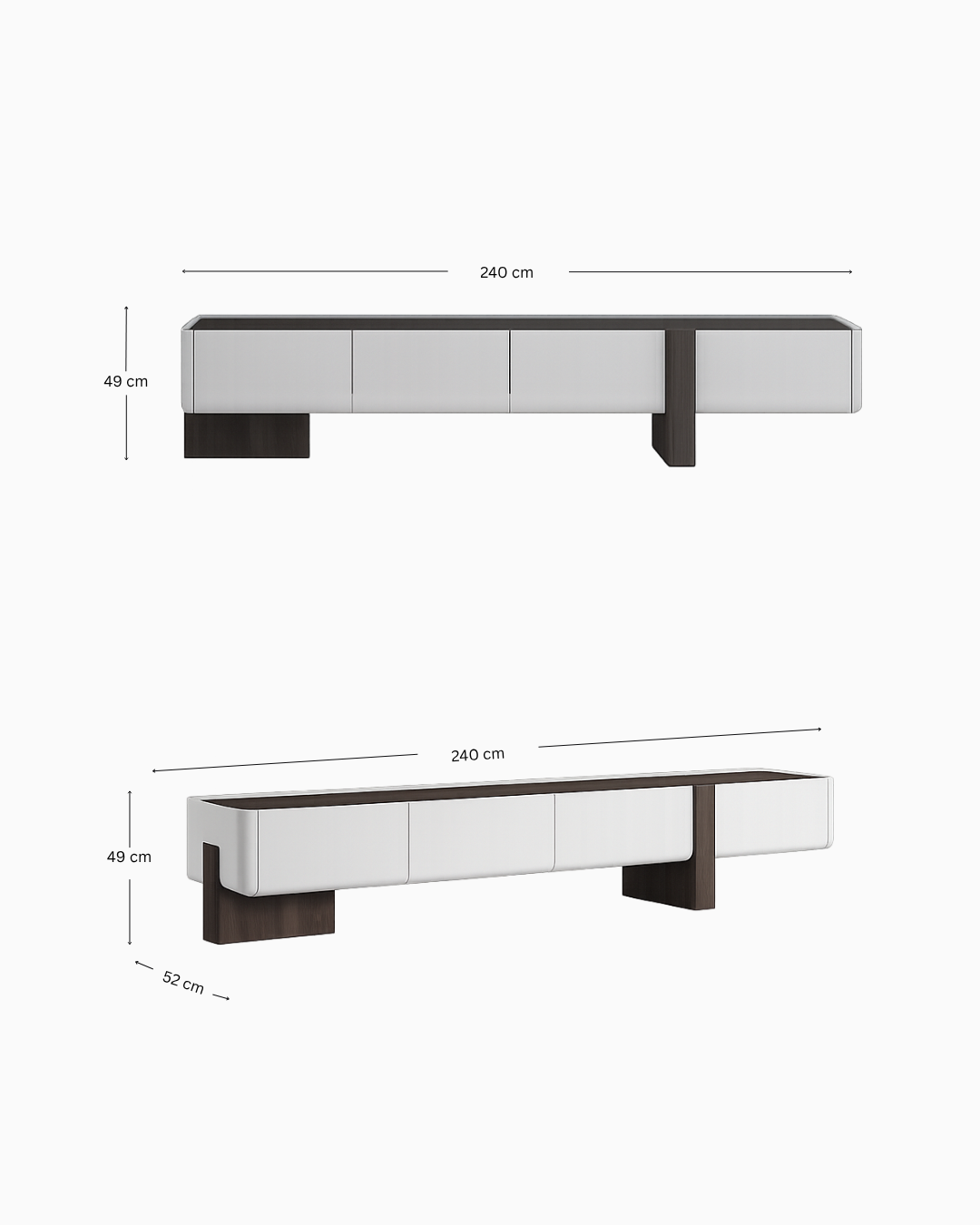Die großzügigen, integrierten Schubladen bieten praktischen Stauraum für Multimedia-Zubehör, Dokumente oder persönliche Gegenstände und sorgen für eine aufgeräumte, harmonische Atmosphäre. Die breite Ablagefläche eignet sich ideal für TV-Geräte, Dekoration oder stilvolle Wohnaccessoires.