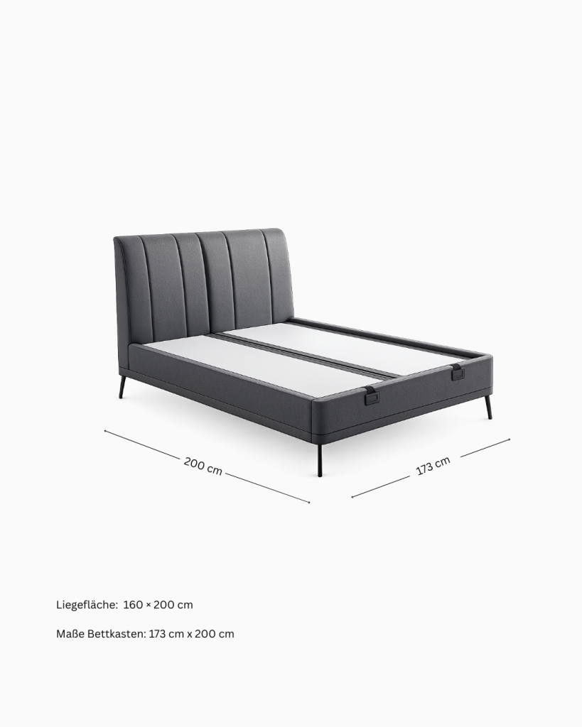 Der Black Ice Bettkasten bietet mit seinem großzügigen Innenraum eine ideale Lösung für Stauraumprobleme und hilft dabei, Ordnung im Schlafzimmer zu schaffen.