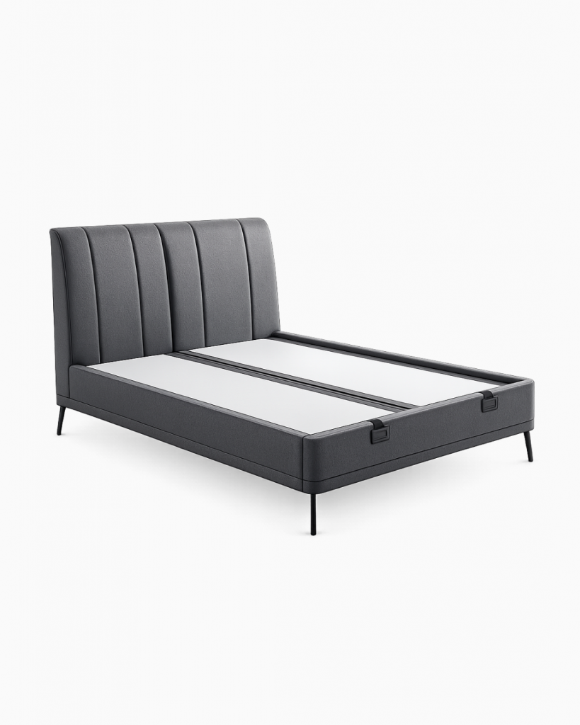 Der Black Ice Bettkasten sorgt mit seinem schlichten Design, das perfekt zum Black Ice Kopfteil passt, für ein harmonisches Gesamtbild im Schlafzimmer. Dank der hohen schwarzen Metallfüße überzeugt er durch eine elegante und moderne Optik.