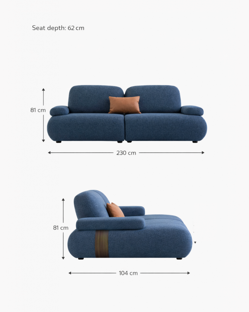 Im Sitzbereich sorgen hochwertige Zickzackfedern (62 cm Länge, 5 cm Breite, 4 mm Stärke) für eine gleichmäßige Gewichtsverteilung und angenehme Elastizität. Das Hauptsitzkissen besteht aus 14 cm starkem, CNC-geschnittenem 32-DNS-Forta-Schaum und ist mit 5 cm Miliform-Vlies sowie 300 g/m² laminiertem Vlies kombiniert. Das Ergebnis ist ein besonders weiches Sitzgefühl bei gleichzeitig hoher Strapazierfähigkeit. Rücken- und Armlehnen sind mit hochflexiblem, weichem 25-DNS-Federkissenschaum ausgestattet und bieten optimalen Anlehnkomfort. Ergänzt wird dies durch ergonomische Lendenkissen (35 × 50 cm), gefüllt mit einer hochwertigen Mischung aus 70 % Silikon-Perlen und 30 % Federschaum-Schnitzeln. Die lackierten Holzfüße mit einer Höhe von 4 cm sind mittels M8-Gewindestange befestigt und lassen sich werkzeuglos montieren. Unter den Armlehnen sorgen pulverbeschichtete Metallbleche (3 mm) für zusätzliche Stabilität und eine elegante, moderne Optik. Bezogen ist das Sofa mit dem hochwertigen Stoff DANTE, der Komfort, Langlebigkeit und stilvolle Ästhetik perfekt miteinander verbindet.Lieferung