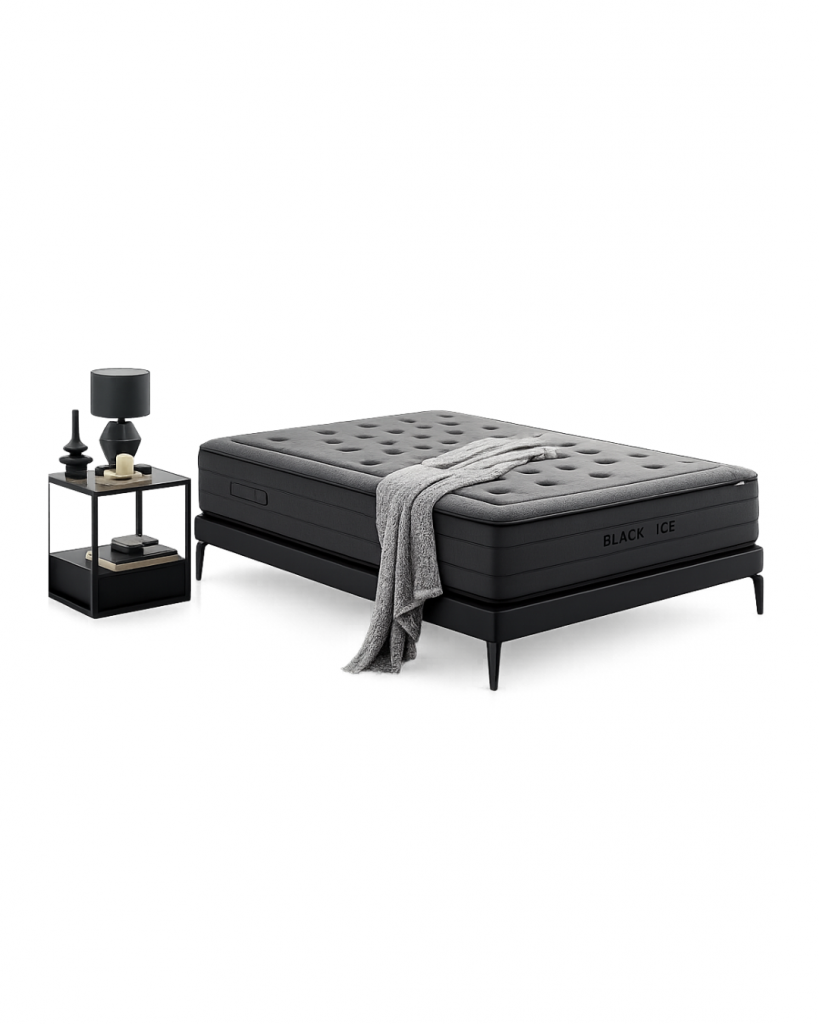 Die Black Ice Matratze wurde mit hochentwickelten, kühlenden Schlaftechnologien entwickelt. Sie ist ideal für alle, die einen angenehm kühlen Schlaf suchen, und richtet sich dank ihres eleganten schwarzen Designs auch an diejenigen, die eine außergewöhnliche Innovation für ihr Schlafzimmer wünschen.