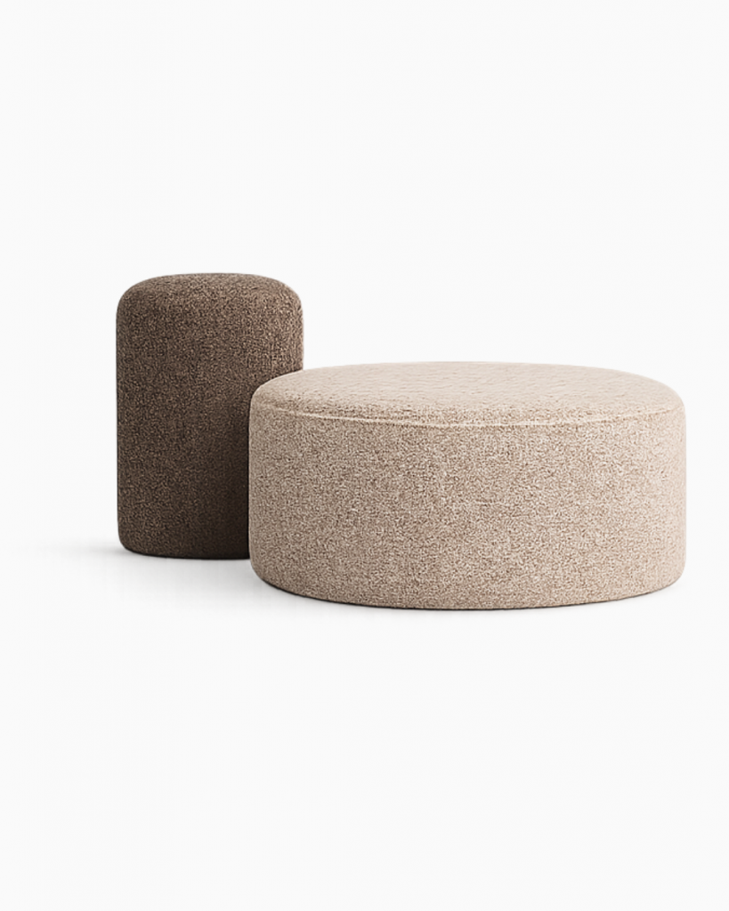 Der Pouf ist vollständig gepolstert und bietet eine angenehme Haptik sowie stabilen Sitzkomfort. Die weichen Volumen und die ausgewogenen Proportionen unterstreichen den gemütlichen Charakter und machen PUFFY zu einem funktionalen wie auch ästhetischen Element im Interior.