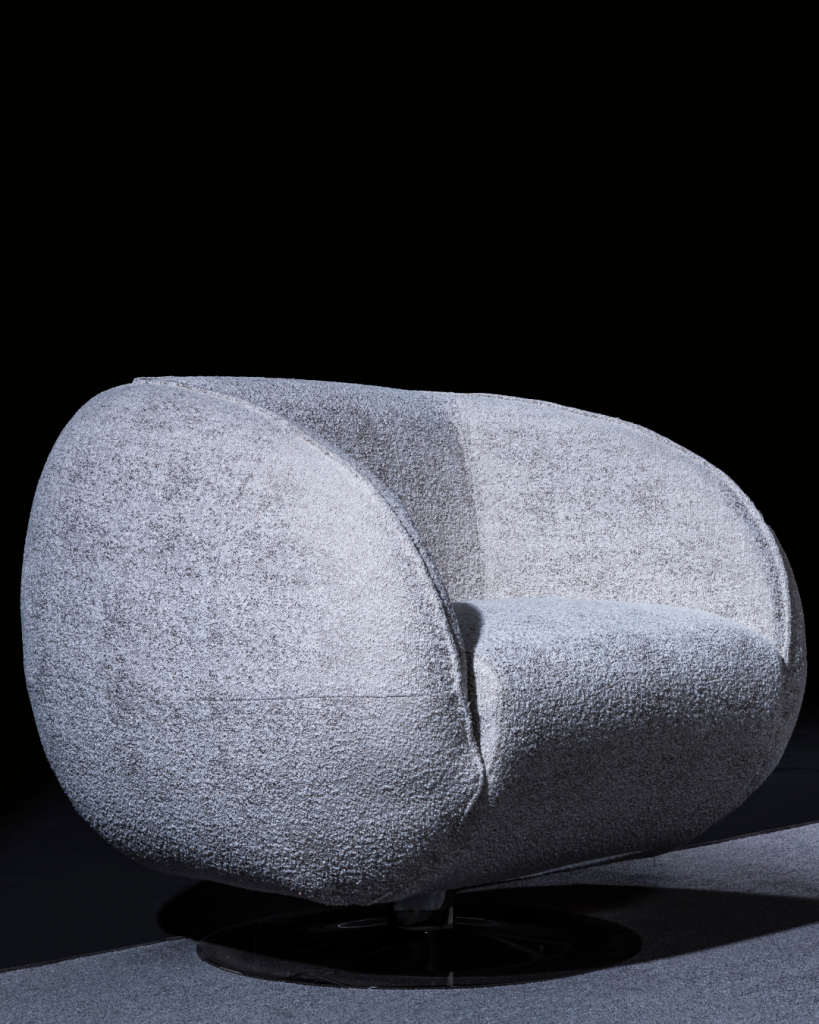 Bezogen ist der Sessel BUBBLE mit dem Stoff SOLE, der durch seine angenehme Haptik, Strapazierfähigkeit und moderne textile Struktur überzeugt und das Design des Sessels harmonisch abrundet.