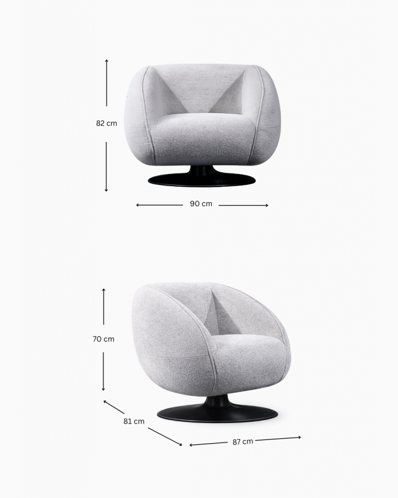 Ein zentrales Merkmal des Sessels BUBBLE ist der integrierte 360°-Drehmechanismus, der eine freie und flexible Bewegung ermöglicht. Diese Funktion verleiht der Sitzgruppe eine besondere Dynamik und erhöht den Nutzungskomfort im Alltag. Trotz der Beweglichkeit bleiben Sitz und Rücken stabil und unterstützen auch bei Drehbewegungen eine sichere, komfortable Sitzposition.