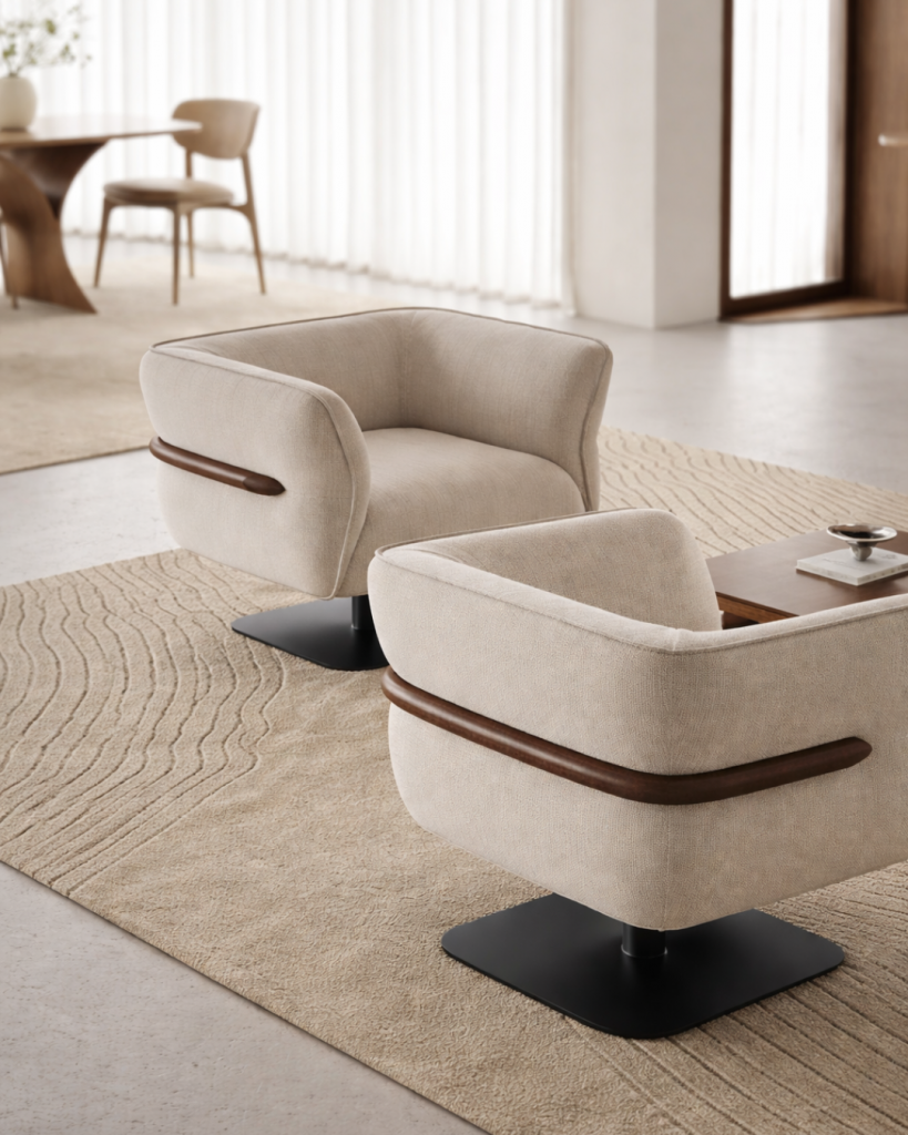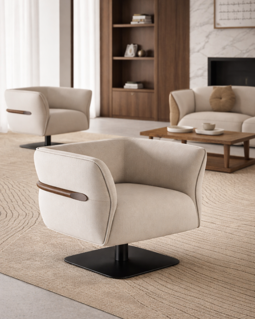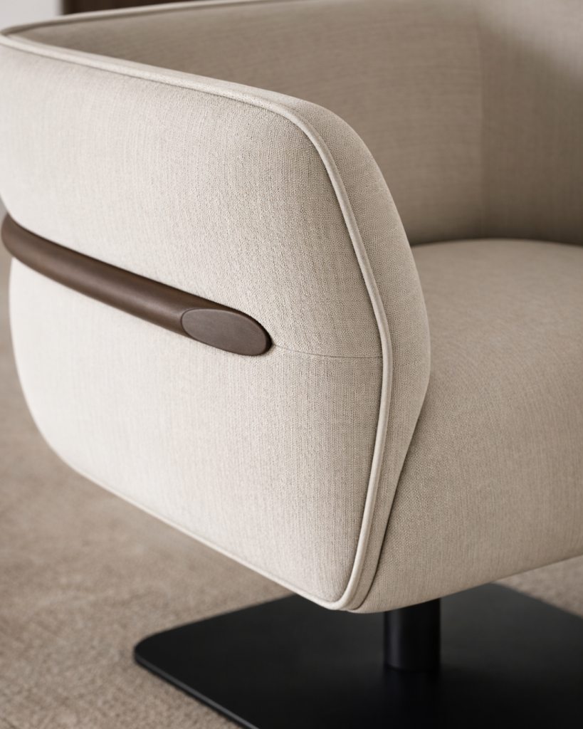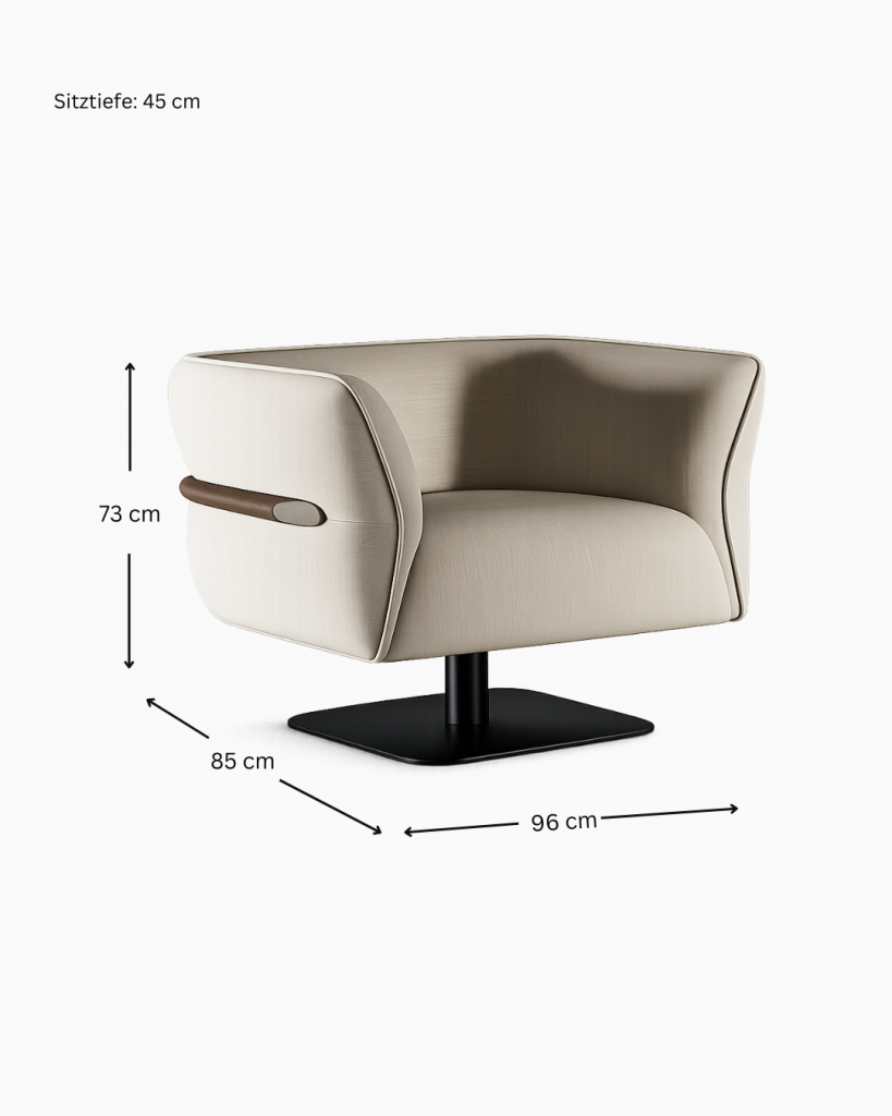 Der Sessel LEGATO überzeugt durch seine klare architektonische Formensprache und eine hochwertige, vollständig aus massivem Buchenholz gefertigte Rahmenkonstruktion. Die präzise CNC-Bearbeitung garantiert eine exakte Passform aller Komponenten und unterstreicht den hohen Qualitätsanspruch des Sessels. Sorgfältig definierte Winkel und ausgewogene Proportionen fördern eine ergonomische Sitzhaltung und gewährleisten zugleich dauerhafte Stabilität.
