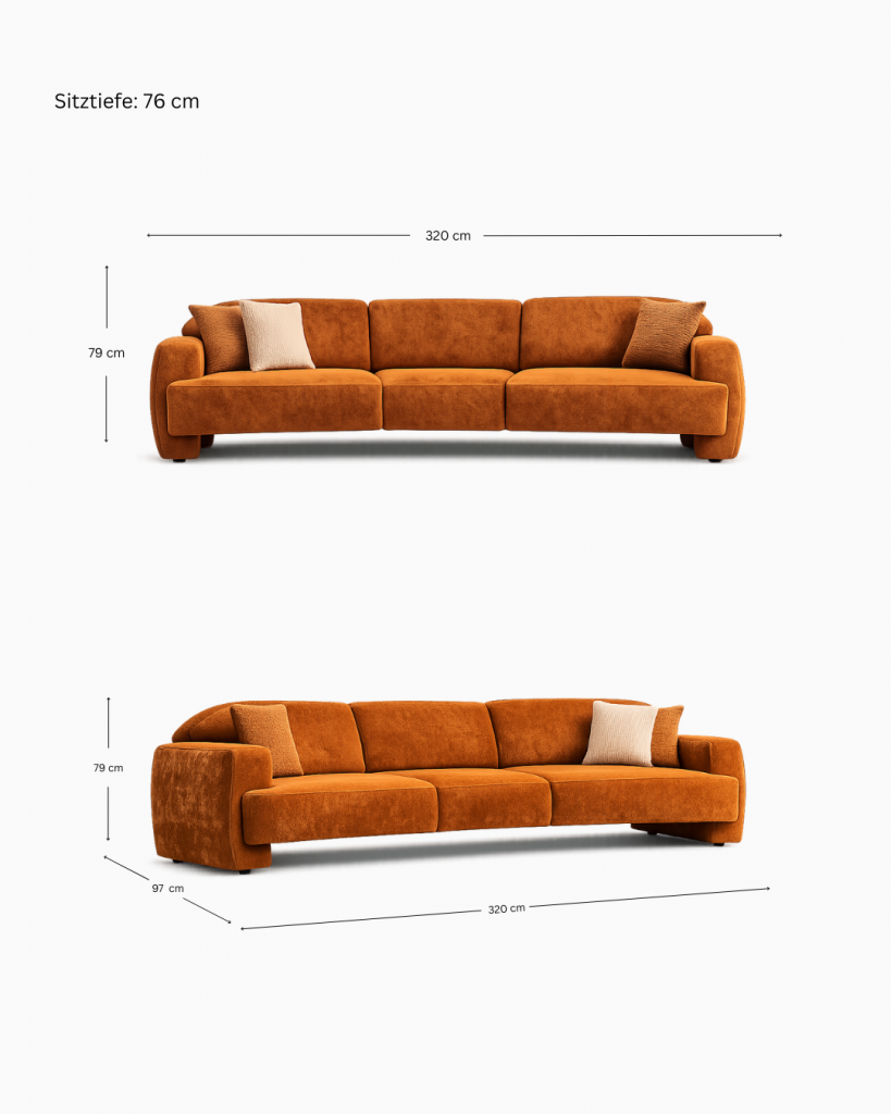 Im Sitzbereich kommt ein elastisches Trampolin-System zum Einsatz, das eine gleichmäßige Federung bietet und den Sitzkomfort nachhaltig unterstützt. Das Hauptsitzpolster besteht aus 12 cm starkem Forta-Schaum mit einer Dichte von 32 DNS und wird durch 3 cm CNC-gefrästen Daunenschaum ergänzt. Dieser mehrschichtige Aufbau sorgt für eine angenehm weiche, leicht federnde Sitzqualität und hohen Komfort im täglichen Gebrauch.