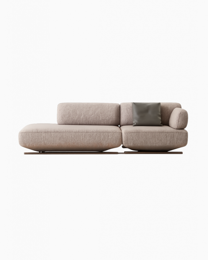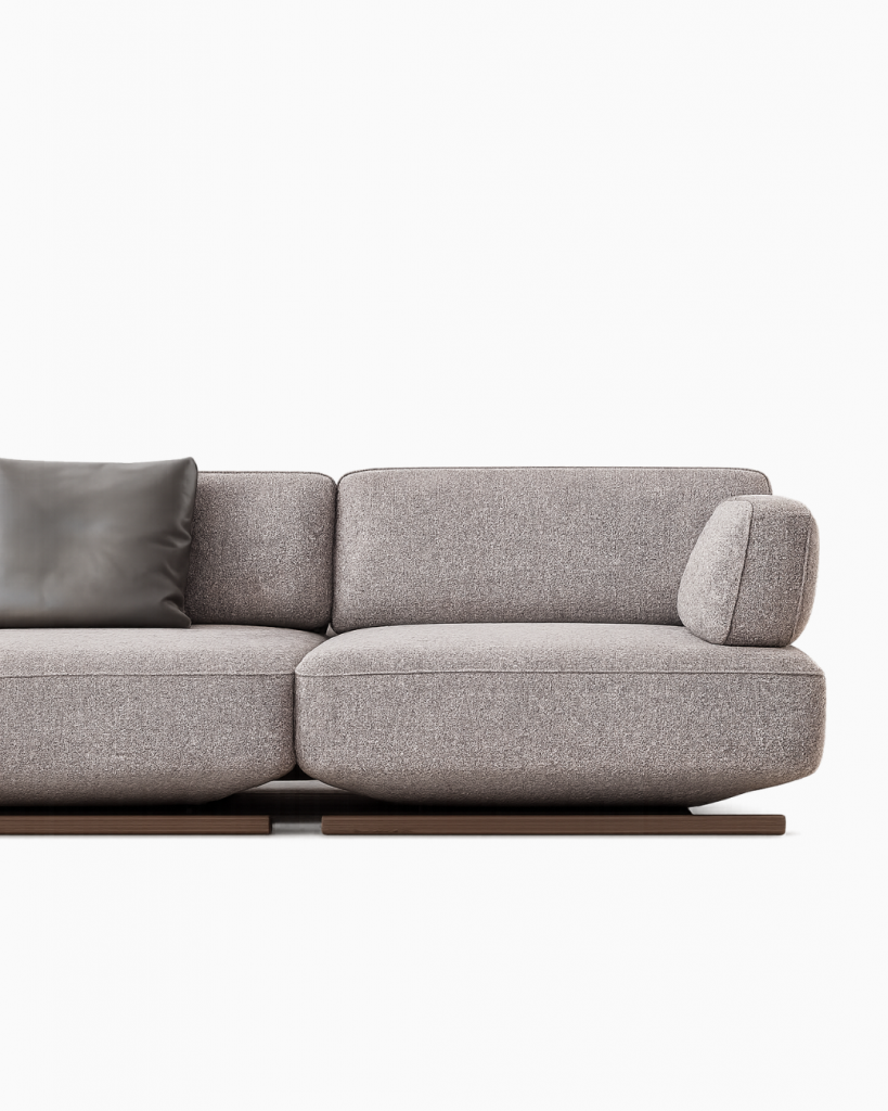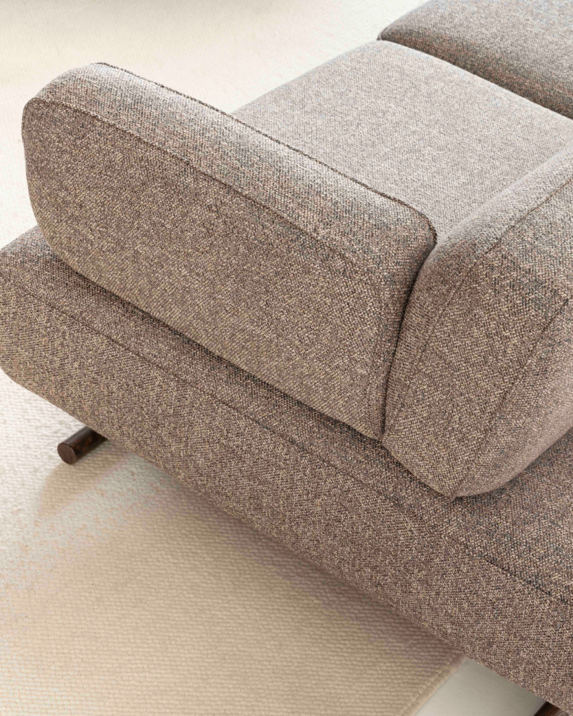 Der Rahmen des Sofas Mila besteht aus CNC-gefrästem Sperrholz, das mit massivem Buchenholz verstärkt ist. Diese Konstruktion vereint geringes Gewicht mit hoher Stabilität und sorgt für eine langlebige, formstabile Basis.