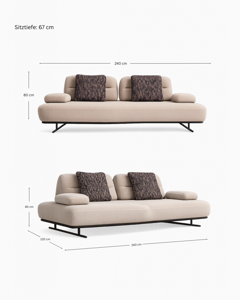 HÖHE 80 cm LÄNGE 240 cm ARMLEHNE HÖHE 12 cm TIEFE 120 cm SITZHÖHE 40 cm SITZTIEFE 67 cm