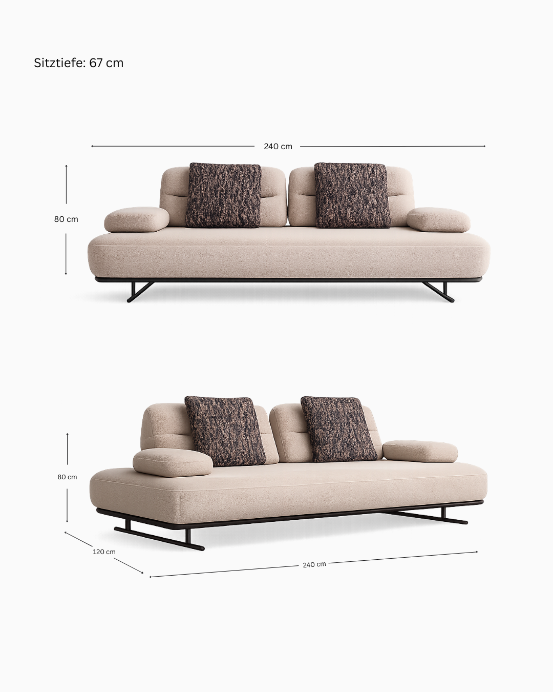 HÖHE 80 cm LÄNGE 240 cm ARMLEHNE HÖHE 12 cm TIEFE 120 cm SITZHÖHE 40 cm SITZTIEFE 67 cm