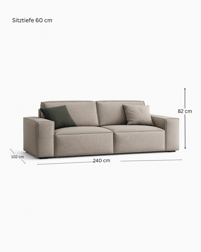 Sitztiefe: 60 cm Breite: 240 cm Tiefe: 102 cm Höhe: 82 cm