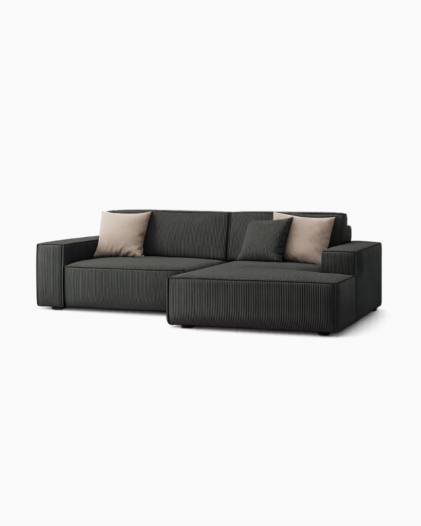 Das Sofa POLA überzeugt durch eine klare, moderne Formsprache, hohe Funktionalität und langlebige Materialqualität. Die ausgewogenen Proportionen, die geradlinige Silhouette und die dezent gepolsterten Volumen verleihen dem Sofa eine zeitlose Eleganz und machen POLA zu einer vielseitigen Lösung für moderne Wohnräume. Hochwertige Materialien, industrielle Präzision und eine durchdachte Konstruktion stehen für dauerhaften Komfort und Stabilität im täglichen Gebrauch. Der Rahmen des Sofas POLA basiert auf einer industriell standardisierten Skelettstruktur aus CNC-geformten, melaminbeschichteten Spanplatten. Diese wird mit massivem Buchenholz der 1. Klasse verstärkt und bildet eine stabile, formbeständige Grundlage mit hoher Belastbarkeit und langer Lebensdauer. Für den Sitzkomfort sorgt ein bewährtes Unterfederungssystem aus Zickzackfedern in Kombination mit Filzauflagen. Diese Konstruktion gewährleistet eine gleichmäßige Druckverteilung, verhindert ein Durchsitzen des Schaums und trägt maßgeblich zu einem dauerhaft komfortablen Sitzerlebnis bei. Das Hauptsitzkissen besteht aus 10 cm starkem, CNC-gefrästem High-Resilience-Schaum (35 HR) mit einer Dichte von 35 kg/m³. Eine zusätzliche Ummantelung aus 90 g/m³ Faserfüllung verleiht dem Sitz eine angenehme Weichheit, unterstützt die Formstabilität und erhöht den Sitzkomfort über lange Nutzungsdauer hinweg. Die Rückenpolster sind mit einer präzisen Facetten-Nahttechnik verarbeitet und sorgen für eine elegante, hochwertige Optik. Die Innenfüllung besteht aus einer ausgewogenen Mischung aus 70 % Perlenfasern und 30 % hochdichten Schaumstoffanteilen (2600 g und 1900 g), die optimalen Halt mit angenehmer Anpassungsfähigkeit verbinden. Die Bezüge der Rückenpolster sind mit Reißverschlüssen versehen, abnehmbar und waschbar, was eine einfache Pflege ermöglicht. Das Sofa POLA ist mit dezenten, schwarzen Kunststofffüßen ausgestattet, die dem Design eine moderne, zurückhaltende Note verleihen. Die Bodenfreiheit von 3 cm erleichtert die Reinigung unter dem Sofa und sorgt gleichzeitig für einen sicheren, stabilen Stand. Bezogen ist das Sofa POLA mit dem hochwertigen Stoff DANTE, der sich durch Strapazierfähigkeit, angenehme Haptik und eine elegante textile Struktur auszeichnet und das Gesamtbild des Sofas harmonisch abrundet.