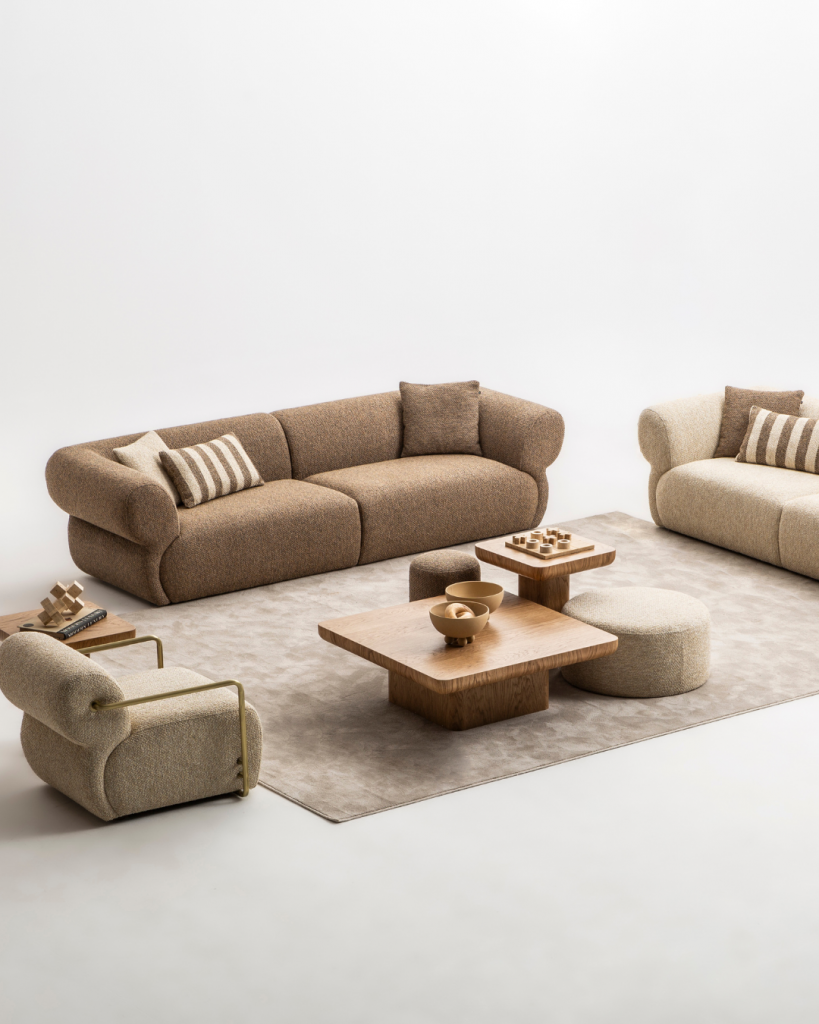 Sitz- und Rückenbereiche sind mit komfortabler Schaumpolsterung ausgestattet und bieten eine angenehm weiche Haptik sowie entspannten Anlehnkomfort. Stoffdetails und Designkombinationen lassen sich individuell anpassen und ermöglichen eine flexible Abstimmung auf unterschiedliche Wohnstile und persönliche Vorlieben.