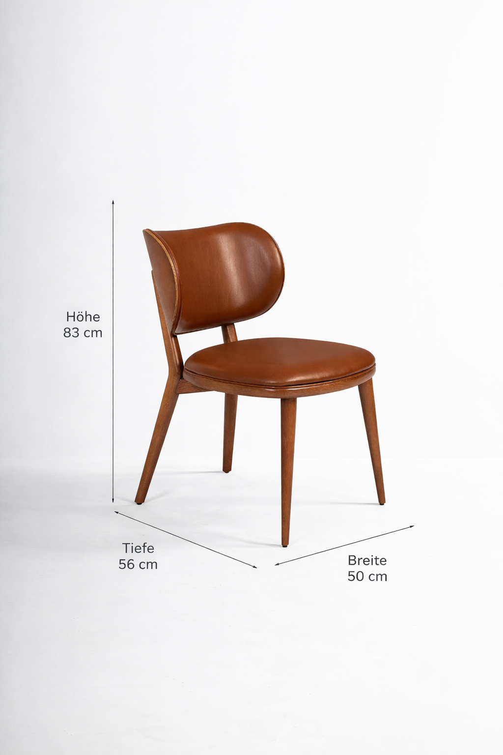 Eleganter Stuhl Artico mit geschwungener Silhouette und hochwertiger Polsterung aus 32-DNS-Schaumstoff. Die ergonomische Form sorgt für hohen Sitzkomfort, während das Gestell aus massivem Buchenholz Stabilität und Langlebigkeit garantiert. Schwarze, genagelte Stuhlbeingleiter verleihen dem Design eine edle und zeitlose Ausstrahlung.