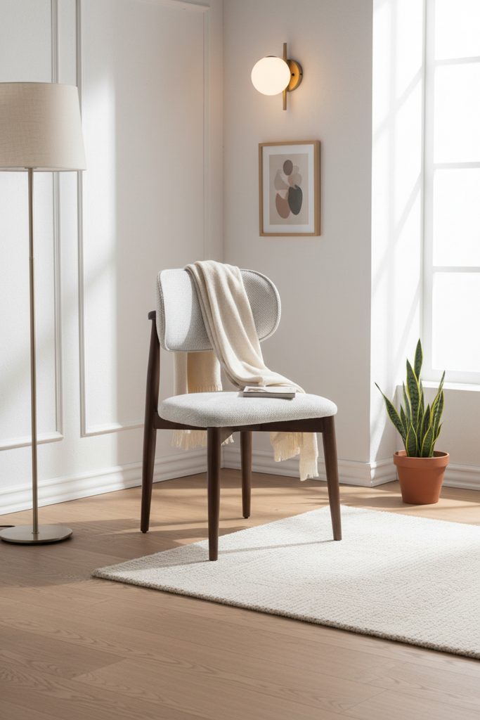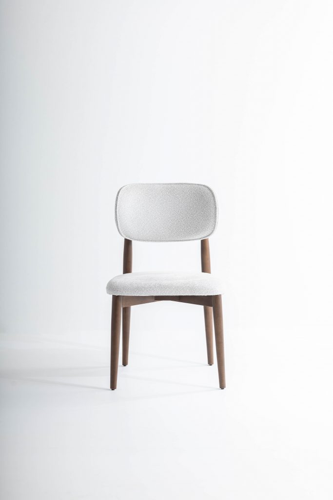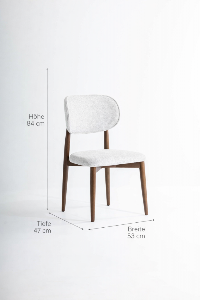 Der Stuhl Bruno ist in 9 verschiedenen Holzfarben und 27 Stoffvarianten erhältlich.