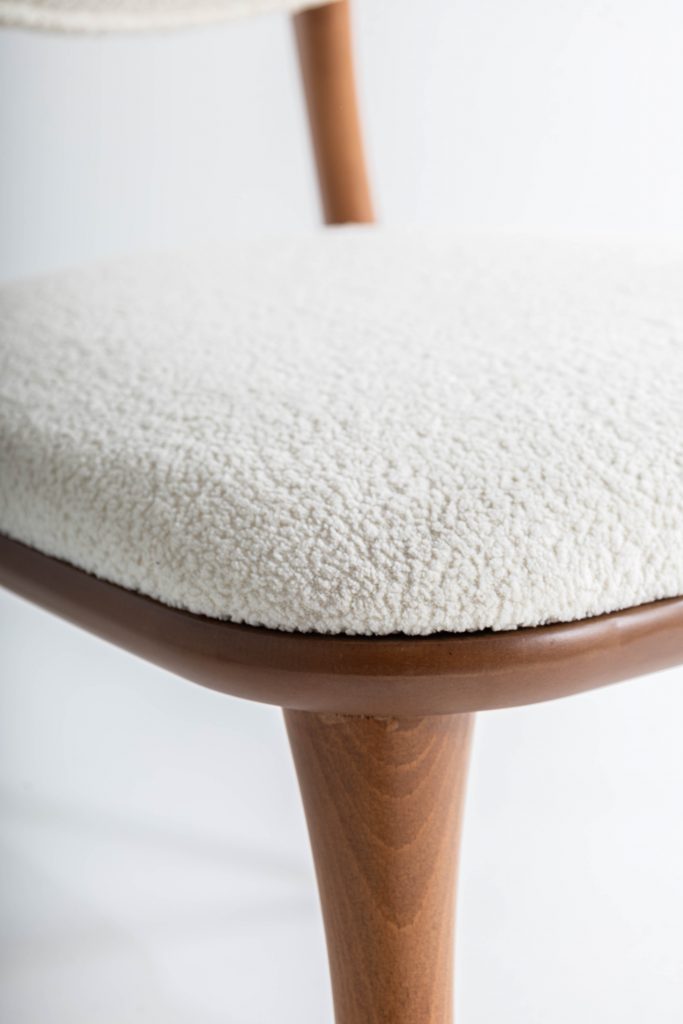 Der Stuhl Cosmos ist in 9 verschiedenen Holzfarben und 27 Stoffvarianten erhältlich.
