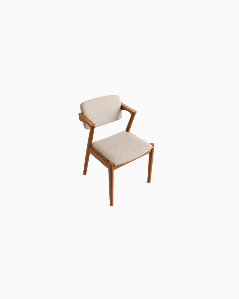 Der Stuhl Keops ist in 9 verschiedenen Holzfarben und 27 Stoffvarianten erhältlich.