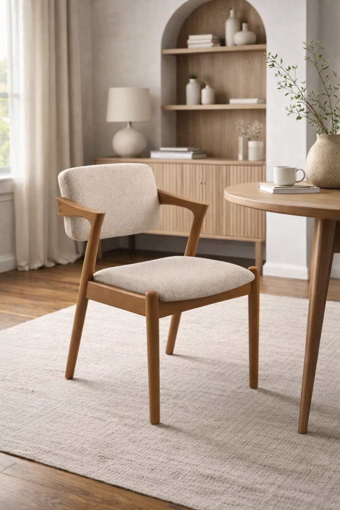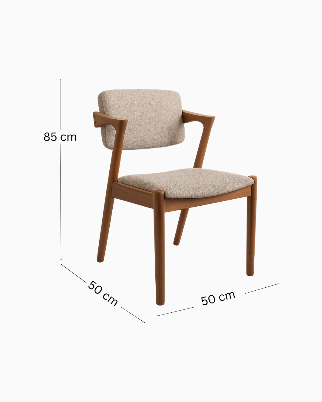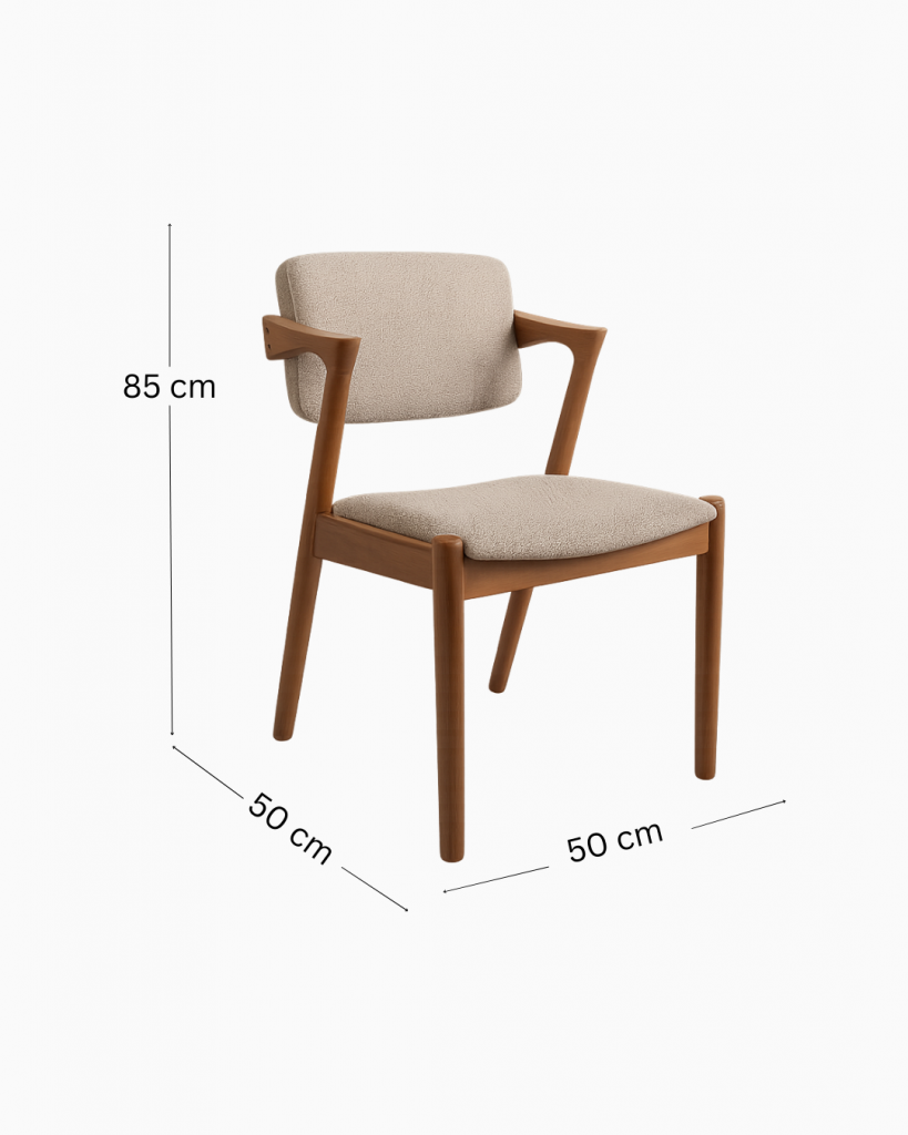Zeitloser Stuhl Keops mit klarer Linienführung und komfortabler Polsterung aus hochwertigem 32-DNS-Schaumstoff. Die ergonomisch geformte Sitz- und Rückenfläche sorgt für angenehmen Sitzkomfort, während das Gestell aus massivem Buchenholz Stabilität und Langlebigkeit garantiert. Schwarze, genagelte Stuhlbeingleiter verleihen dem Design eine hochwertige und elegante Note.