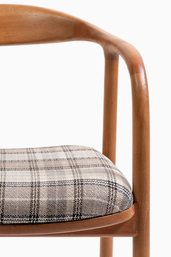 Der Stuhl Maestro ist in 9 verschiedenen Holzfarben und 27 Stoffvarianten erhältlich.