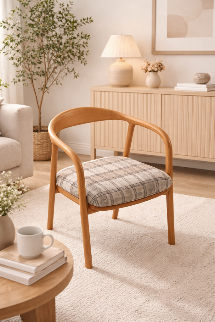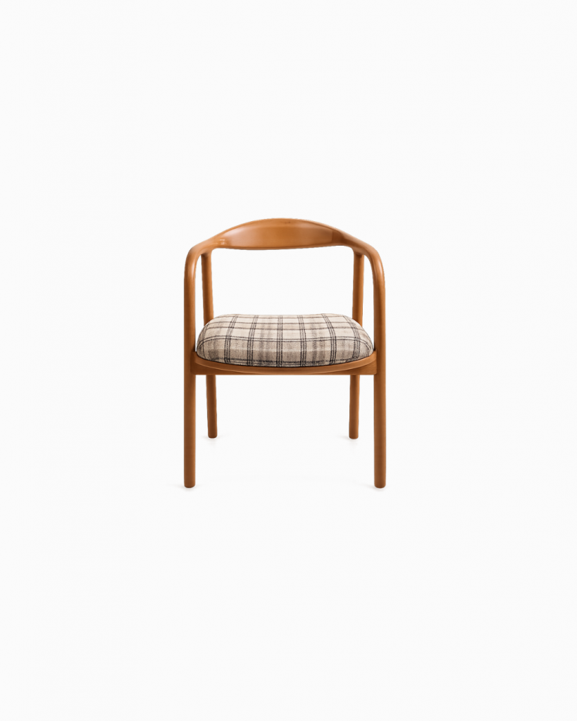 Stilvoller Stuhl Maestro mit sanft geschwungener Rückenlehne und komfortabler Sitzfläche aus hochwertigem 32-DNS-Schaumstoff. Die Kombination aus massivem Buchenholz und gepolsterter Sitzfläche sorgt für angenehmen Komfort und zeitloses Design. Schwarze, genagelte Stuhlbeingleiter unterstreichen die hochwertige Verarbeitung und verleihen dem Stuhl eine elegante Note.